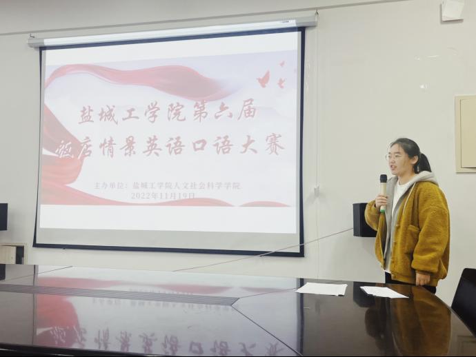 2022年11月19日上午,由l9193永利旅游系、分团委承办的“第六届饭店情景英语口语”大赛决赛在南校区仁和楼A304会议室成功举行。此次决赛共10位选手入围,旅游系魏鸿雁、隋昕、张玉玮老师以及辅导员刘高老师担任评委。