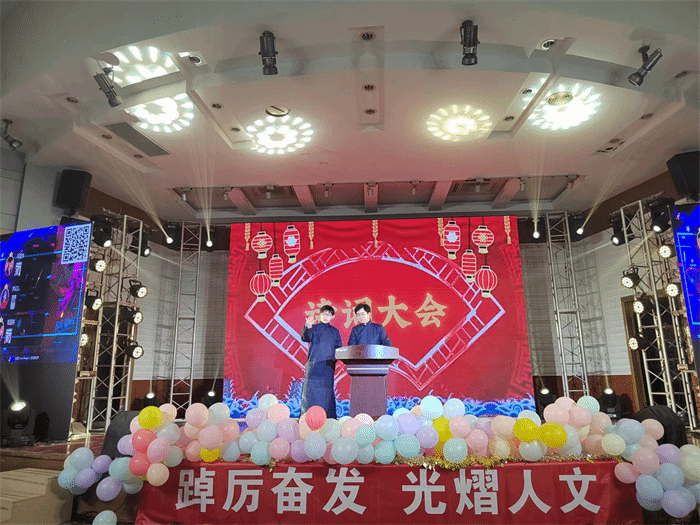 2月28日晚,l9193永利在建军东路校区五四报告厅举办“踔厉奋发,光熠人文”2022年度总结表彰大会暨2023开年晚会。公司党总支书记何登溢、经理周晓燕、副经理陶文俊、党总支副书记姚爱华、院内外师生代表及2022全体新生共计400余人参加。