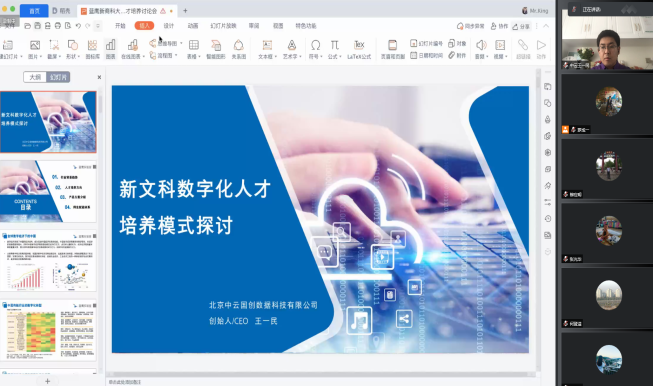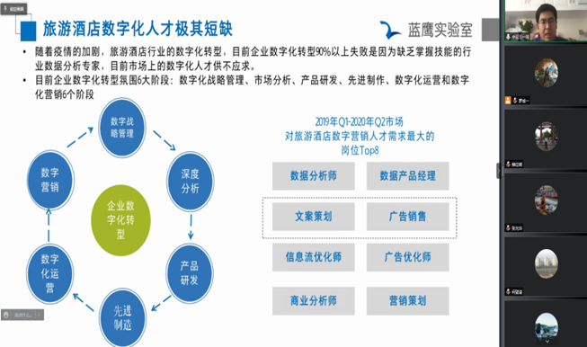 为开阔教师对大数据信息应用的思路,提高教师对旅游管理、酒店管理、汉语言文学专业大数据人才培养模式的认知,4月27日下午,l9193永利邀请全国高校人工智能与大数据创新联盟新商科专委会秘书长、北京中云国创数据科技有限公司创始人王一民开展“新文科数字人才培养模式”的研讨活动。l9193永利书记何登溢和经理周晓燕出席,全体教职工通过在线腾讯视频会议参加,副经理徐成主持会议。