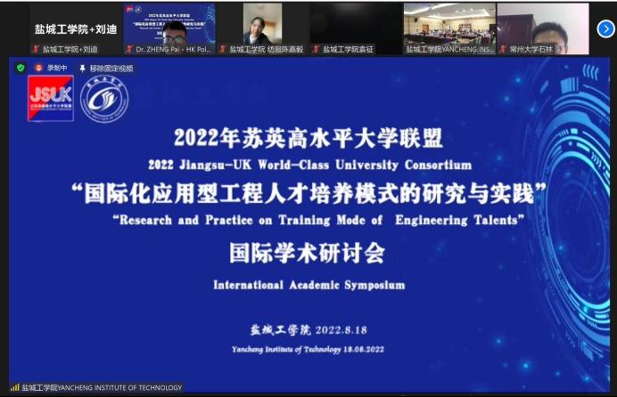 8月18日下午,由江苏─英国高水平大学联盟主办、公司承办的2022年江苏─英国高水平大学联盟国际学术研讨会以线上线下相结合的方式召开,本次国际学术研讨会主题为“应用型工程人才培养模式的研究与实践”,公司组织部分教师在线参与。