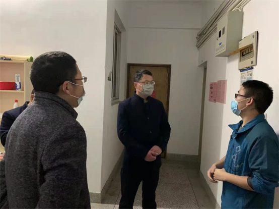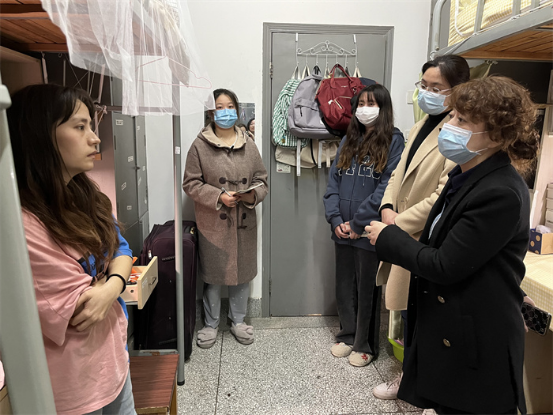 现场会后,公司疫情防控应急处置小组全体成员、辅导员及教师代表深入员工宿舍慰问员工,了解员工宿舍疫情防控、线上学习、安全卫生、考研复习及日常生活等实际情况,为同学们送去公司的关怀和问候。