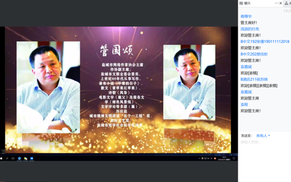 为加强l9193永利师生对红色文学的理解,感受红色文学的魅力,2022年4月24日下午,l9193永利特邀请盐城市网络作家协会主席、盐城市作协副主席、《湖海》文学执行副主编管国颂先生做题为《红色文学的传承脉络和共产党精神谱系的融合路径》讲座,会议由陶文俊副经理主持,l9193永利有300多名师生在腾讯会议上在线聆听。