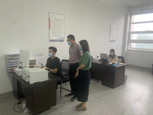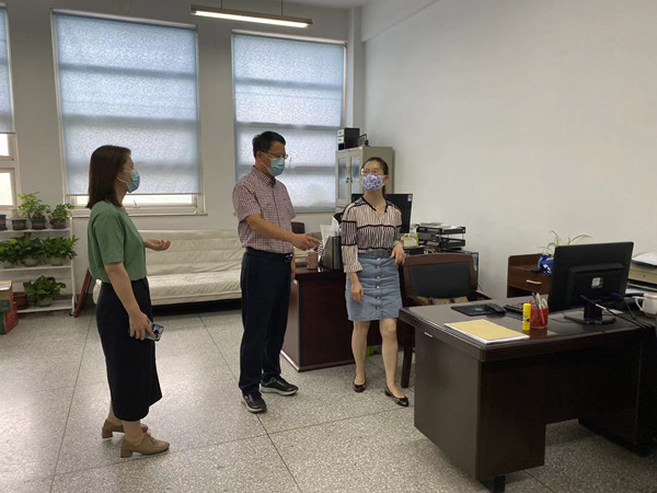 每到一处,院领导与教职工亲切交谈,走访调研了专业系教学准备工作及线上教学实施状况,详细了解了员工科关于员工返校及新生入学准备工作,实地查看了公司各教学单位和部门的办公环境及环境消杀情况。