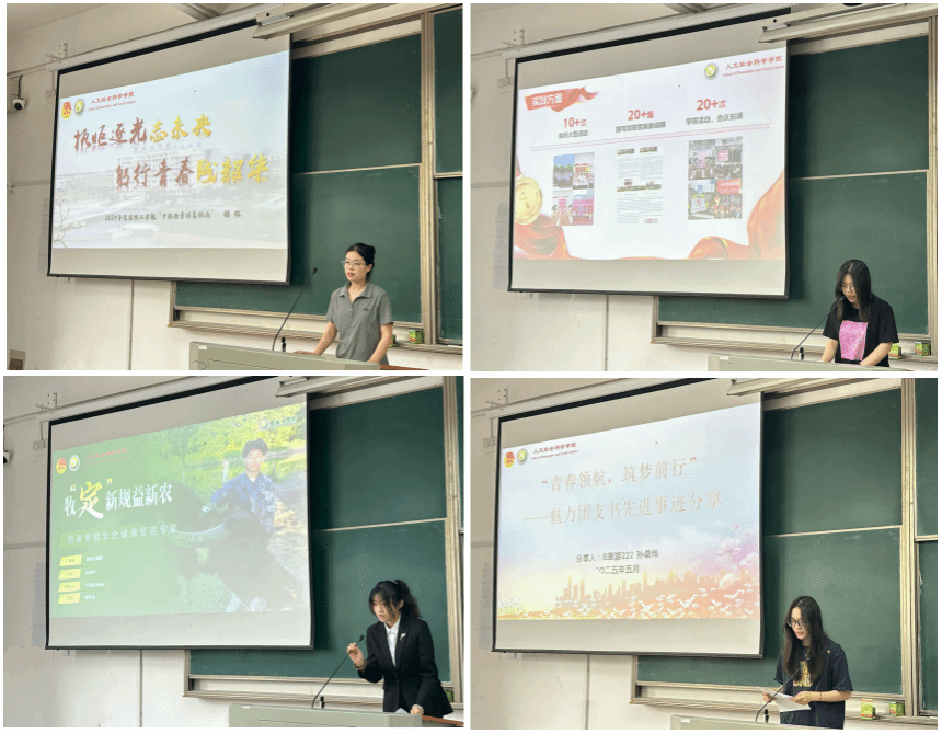 在五四主题团课中,乐珮珮带领大家学习习近平总书记重要讲话和给谢依特小学戍边支教西部计划志愿者服务队队员回信精神,深刻解读了习近平总书记对青年一代在乡村振兴、西部支教等关键领域建功立业的殷切期望。她希望全体青年学子要牢记总书记嘱托,在新时代新征程上,充分理解中国式现代化的内涵要求,将个人理想追求融入党和国家事业之中,未来为中国式现代化建设贡献青春力量。随后,2024年校思政技能大比武团支书专项赛一等奖获得者、B中文232班团支书张杨蕗以“一技在手,一生以求”为主题,以工匠精神为切入点,为大家呈现一堂兼具文化底蕴与青春特质的示范主题团课。