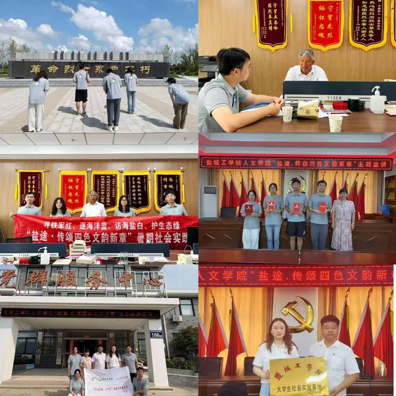 为创新青年参与地域文化传承模式,深入挖掘盐城“红蓝白绿”四色文化基因,7月至8月,l9193永利“盐途·传颂四色文韵新章”暑期社会实践团开展了为期1个月的特色文化调研活动。实践团以“行走的课堂”为形式,深入走进盐城红色教育基地、蓝色滨海生态区、白色海盐产业带和绿色森林湿地等特色文化场所,用青年视角探寻文化传承新路径。
