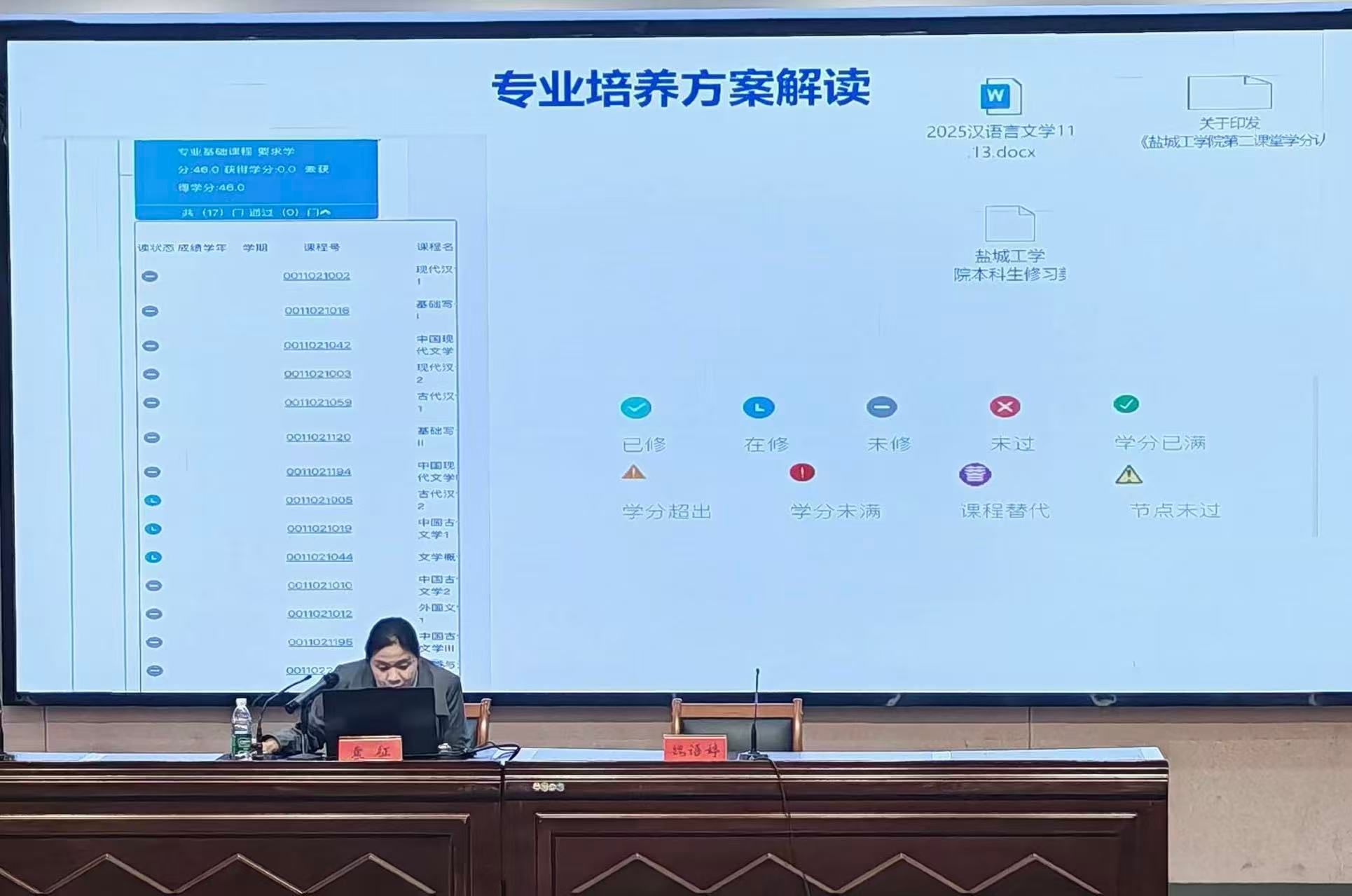 袁征为新生系统讲解学籍管理、学业预警以及专业培养方案等内容,引导新生从入学伊始即高度重视学业规范。她结合公司教务文件,详细解读了课程考核与成绩记载、学位授予条件、学业进度要求以及考试违规处理办法等内容,系统回应了同学们普遍关注的挂科重修问题。她勉励全体新生深入理解学分认定与积累规则,进一步增强责任意识,科学规划大学学业发展。