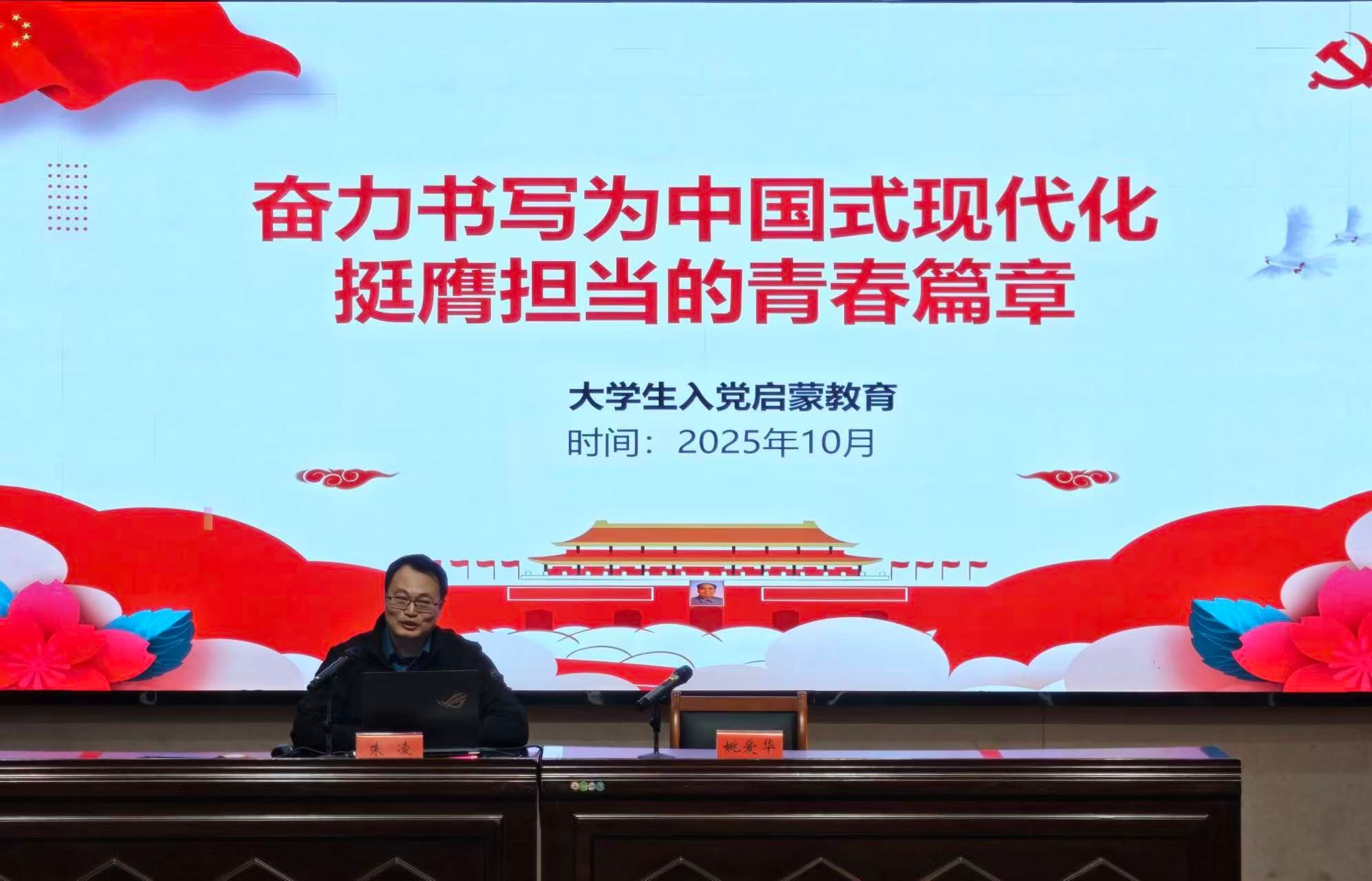 朱凌为全体新生作老员工入党启蒙教育专题辅导。他从追溯党的光辉起点出发,围绕入党申请与党员发展的规范流程展开系统讲解。他强调,每位入党申请人都应当准确把握党员发展的基本程序,明晰成为发展对象的具体条件,切实端正个人入党动机,并以高度负责的态度,规范履行各项入党手续。