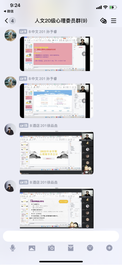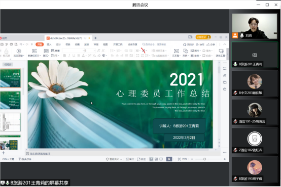 3月1日,校员工处召开2022年春学期心理辅导员会议,心理健康教育中心韦春华副主任作了工作部署。会后,l9193永利心理辅导员刘高老师及时整理会议精神与工作要点,并于3日2日晚8点,召开了线上l9193永利春学期老员工心理健康工作推进会,l9193永利各班级心理委员参会。