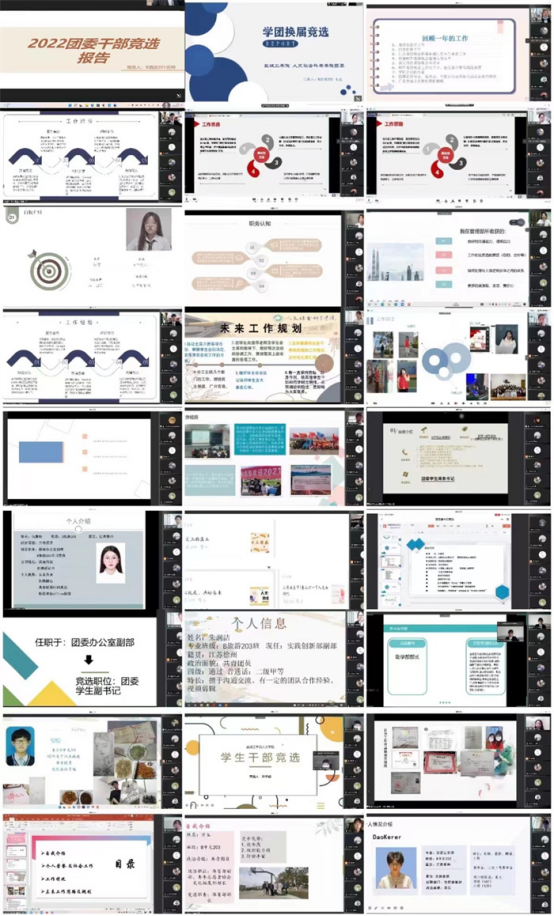 公司团委员工书记倪慧敏、员工会主席张瑾分别作第二十届团学组织述职报告。33名候选人从个人基本情况、竞选岗位及优势、工作打算等方面发表竞选演讲。