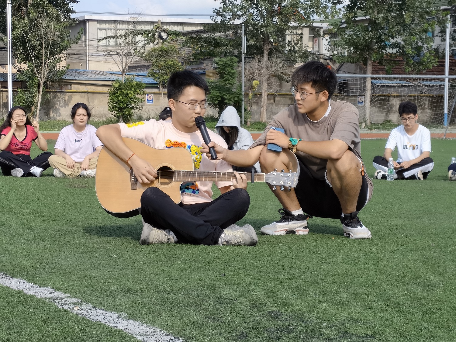 中秋主题文案征集活动中,人文学子们充分发挥专业特长,精心创作与中秋相关的诗词短句,以表达自己的中秋之感,思家之情。新生中秋线上联谊会中,各班级的同学们通过视频自我介绍,互相认识,畅谈自己的成长经历和家乡特色,进一步增进同学之间的了解。同学们还围绕中秋主题,一起探讨中秋节的起源、家乡习俗、诗歌等,并彼此发送中秋祝福,欢声笑语,其乐融融。户外素质拓展活动中,新生辅导员乐珮珮和21级学长学姐们带领各班级的新生代表,在建军东路校区的操场上进行了中秋主题“飞花令”、“猜谜”、“数字炸弹”、“抱团喊数”等破冰游戏,同学们热情高涨,积极参与。活动中设置了才艺表演环节,同学们竞相上台,各展才华,表演了唱歌、舞蹈、相声等形式多样、内容丰富的精彩节目,B中文221邢濠同学的吉他弹奏《但愿人长久》,歌曲婉转悠扬,承载了演唱者心中美好的愿景,更是赢得了同学们的阵阵掌声。活动最后,同学们纷纷拿出手机拨通远方亲人的电话,表达了对亲人的思念,分享在校生活以及对未来老员工的美好憧憬。