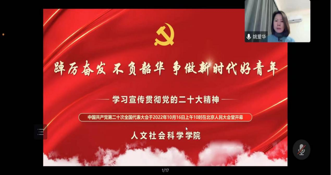 姚爱华以《踔厉奋发,不负韶华,争做新时代好青年》为题作党的二十大精神巡讲。她从党的二十大基本情况、深刻领会党的二十大的基本精神、争做新时代好青年等三个方面对党的二十大报告进行全面解读。她结合当代青年在脱贫攻坚战场、科技攻关岗位、抢险救灾前线、疫情防控一线、奥运竞技赛场以及保卫祖国哨位上展现的青春风采和动人故事,带领同学们重温历年来习近平总书记对青年的回信精神和深情寄语,她希望大家要认真学习领会党的二十大精神,牢记习近平总书记的殷殷嘱托,坚定理想信念,做“眼里有光”的新时代好青年,敢于担当使命,做“肩上有责”的新时代好青年,吃苦锤炼本领,做“手上有招”的新时代好青年,奋斗书写答卷,做“脚下有路”的新时代好青年,让青春在全面建设社会主义现代化国家的火热实践中绽放绚丽之花。