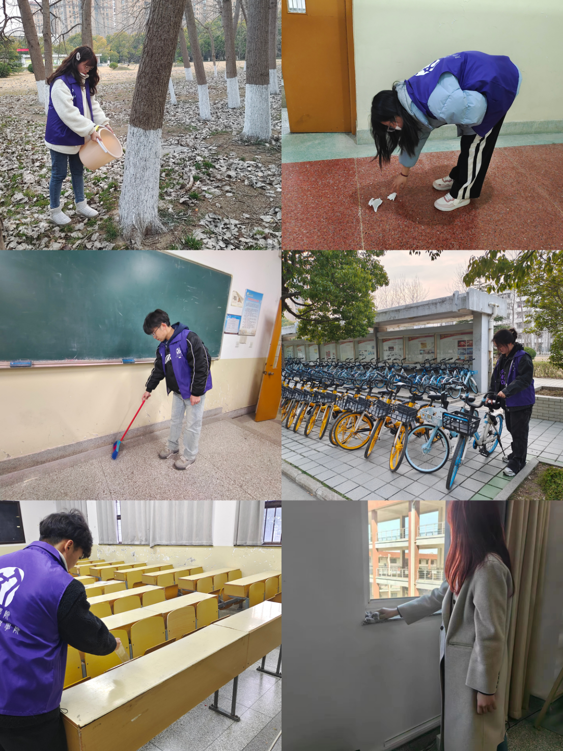 在“赓续雷锋精神,共建和谐校园”校内志愿服务行动中,人文青年志愿者们立足校园,开展整理共享单车、打扫教室卫生、清洁卫生死角、清理校园垃圾、为“员工林”树木浇水等校内志愿服务活动,不仅美化了校园环境,同时也让同学们在具体实践中加强劳动教育,培养了勤俭、奋斗、创新、奉献的劳动精神。