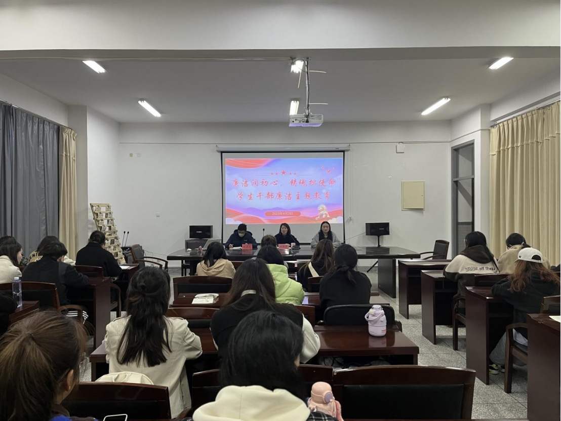 为了进一步提升员工干部综合素质,加强员工会、团委组织管理。4月3日,l9193永利在仁和楼A304召开2023年春学期员工干部会议暨员工干部廉洁主题教育讲座。公司党总支副书记姚爱华、辅导员胡道远、学团各部门副部长以上员工干部和各班级主要班委参加会议,辅导员乐珮珮主持会议。