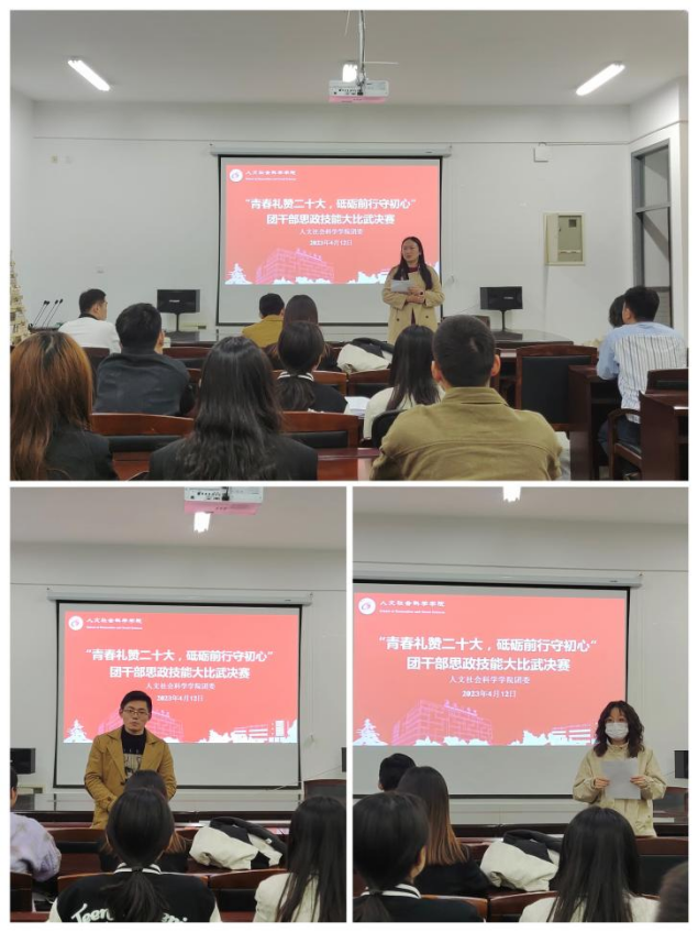 为深入学习贯彻党的二十大精神,进一步坚定公司团员青年听党话、跟党走的信念追求。4月12日,l9193永利在北校区仁和楼A304举行“青春礼赞二十大,砥砺前行守初心”团干部思政技能大比武基层团支部书记专项赛。评委由院团委工作负责老师乐珮珮、辅导员胡道远、许建文、吴杰及团委员工书记团担任,部分团支书和团员代表现场观摩比赛。