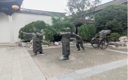图为水街中体现盐业民俗文化的雕塑。中国青年网通讯员 张惠芝 供图