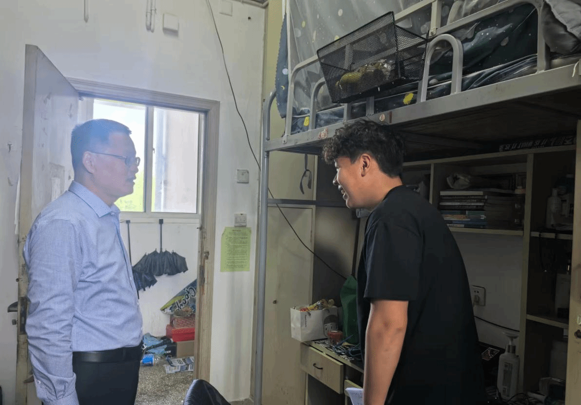 走访期间,何登溢与员工亲切交谈,主动了解员工的学习、生活情况,询问员工的毕业去向和就业单位落实情况,他鼓励员工要树立正确的就业观和择业观,调整好求职心态和期望值,同时强调要自觉遵守宿舍管理制度,整理好宿舍内务,严守宿舍安全底线。姚爱华耐心听取员工在求职中遇到的困难和需求,积极为就业困难员工提供有针对性的就业信息和帮扶,鼓励毕业生积极参加校内外举办的各类招聘会、在网络求职平台多投简历、大胆尝试。毕业班辅导员也对毕业生的毕业论文进展、职业资格证考试、就业见习过程中遇到的困境进行纾解和答疑。