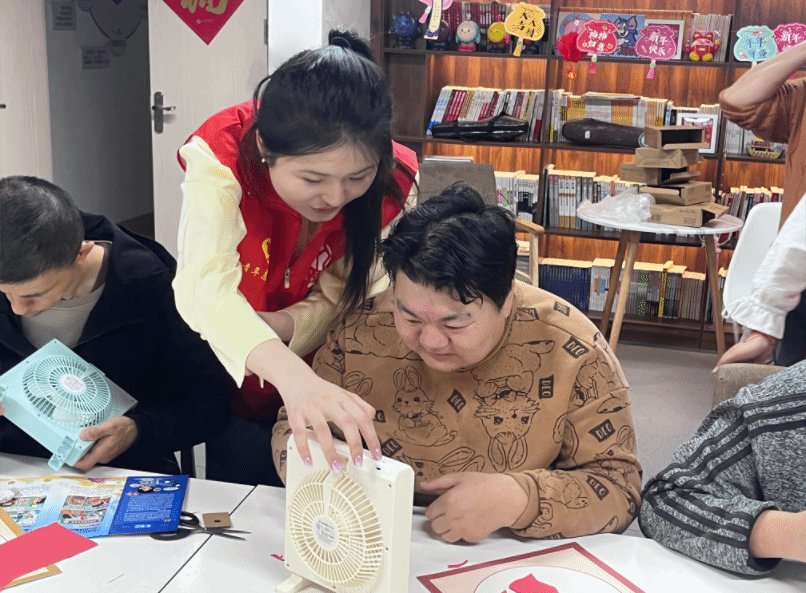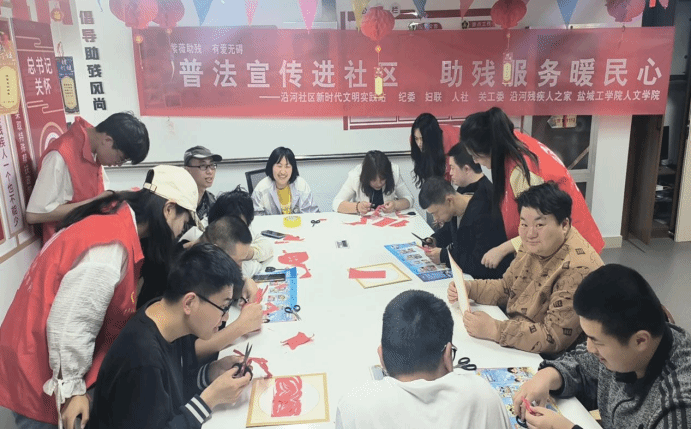 活动中,志愿者们向社区残疾人朋友们发放普法宣传单,并结合现实案例向他们解读了《残疾人保障法》《中华人民共和国民法典》等法律中涉及残疾人群体在就业、创业、社会保障等方面的法律知识。之后,志愿者们与残疾人朋友围坐一堂,共同投入到剪纸艺术创作和电子元件的手工制作中,耐心倾听他们的生活经历,共同分享人生的点滴欢乐,志愿者们用真挚的关怀和温暖的话语让残疾人朋友感受到社会的关怀与支持。最后,志愿者们向残疾人朋友发放了精心准备的小礼品,主动帮助中心完成扫地、拖地、整理桌面等清洁工作。
