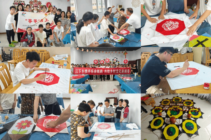 7月底至8月初,团队成员先后前往宿迁市魏井社区、南通市博物苑、南通市飞响板鹞博物馆、南通风筝博物馆等地开展实地调研。团队成员们通过了解当地纸鹞、拜访当地非遗传承人、参观博物苑、开展纸鹞进社区等活动,进一步探究归纳在文旅融合与乡村振兴视域下,南通、宿迁等非遗强市利用非遗资源,提速地方经济的成功模式和宝贵经验,以期为乐余纸鹞的传承与发展注入新的动力,推动乡村振兴事业不断蓬勃发展。