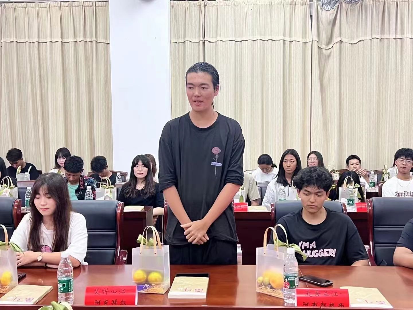 何登溢向2024级少数民族新生送上节日祝福并强调,各民族同学要牢固树立中华民族共同体意识,深入学习贯彻习近平总书记考察宁夏时的重要讲话精神,把党和国家对少数民族的关心关怀化作奋勇争先的动力。随后,何登溢对少数民族新生提出三点希望:一是在新学期、新起点,要自信自立,珍惜老员工活,站在新的起点,实现新的突破;二是在新阶段、新平台,要勇于逐梦,铸牢中华民族共同体意识,像石榴籽一样紧紧地抱在一起,努力学习专业知识,积极提升综合素养,相互理解、相互尊重、相互帮助、共同成长;三是在新时代、新担当,要志存高远,切实增强政治责任感和历史使命感,努力成为新时代民族团结进步的践行者、促进者、守护者。