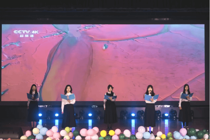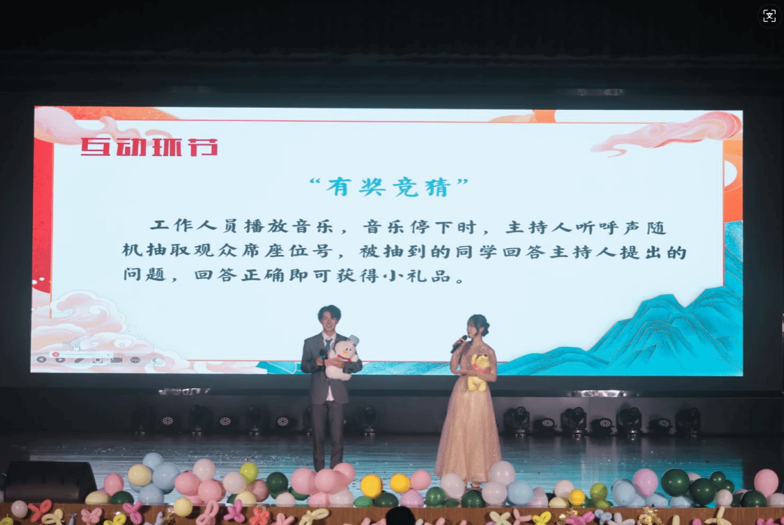 晚会期间还穿插了紧张又刺激的游戏和互动环节,给观众们带来了无尽的欢乐与惊喜。这些精心设计的游戏不仅考验了同学们的智慧与反应能力,更拉近了台上台下、师生之间的距离,让整个晚会现场充满了欢声笑语。最后,老师与同学们共同登上舞台,全场深情合唱《我爱你,中国》,为晚会画上了圆满的句号。