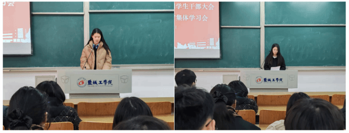 员工干部会上,魏语婷围绕奖学金评定、晚归不归检查、心理健康、助学金发放、考研就业等工作进行了布置和强调。她希望所有员工干部要明确身份认识,树立良好形象,在各方面充分发挥模范带头作用,正确对待学习与团学工作之间的关系,做到学用相长、知行合一,不断提升综合素质。