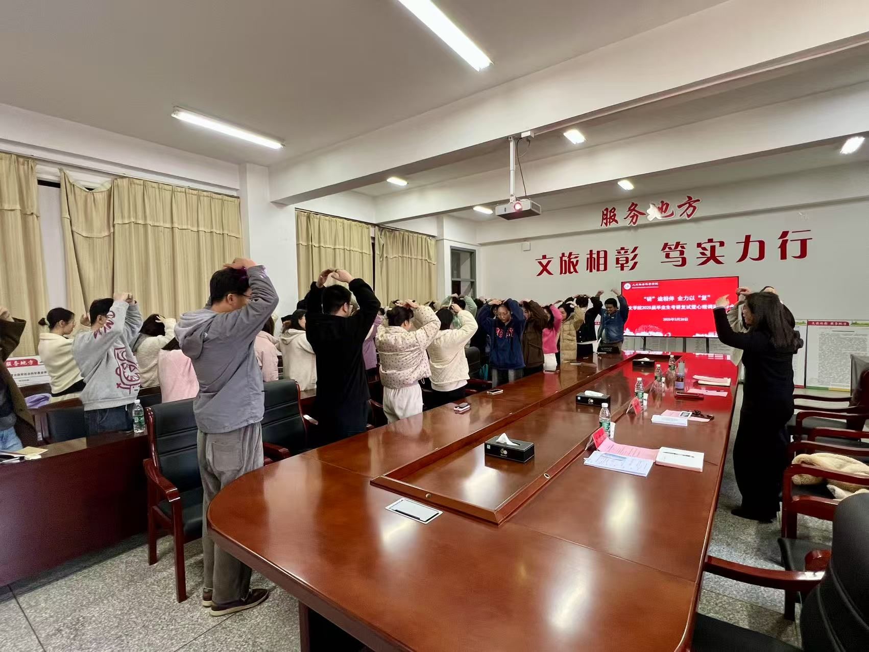 谢莹通过口令接龙游戏,帮助同学们通过肢体语言释放焦虑情绪。在曼陀罗绘画环节,她引导同学们用色彩具象化心理状态并解读分享,参与员工表示,这种表达性艺术活动有效降低了备考压力值。