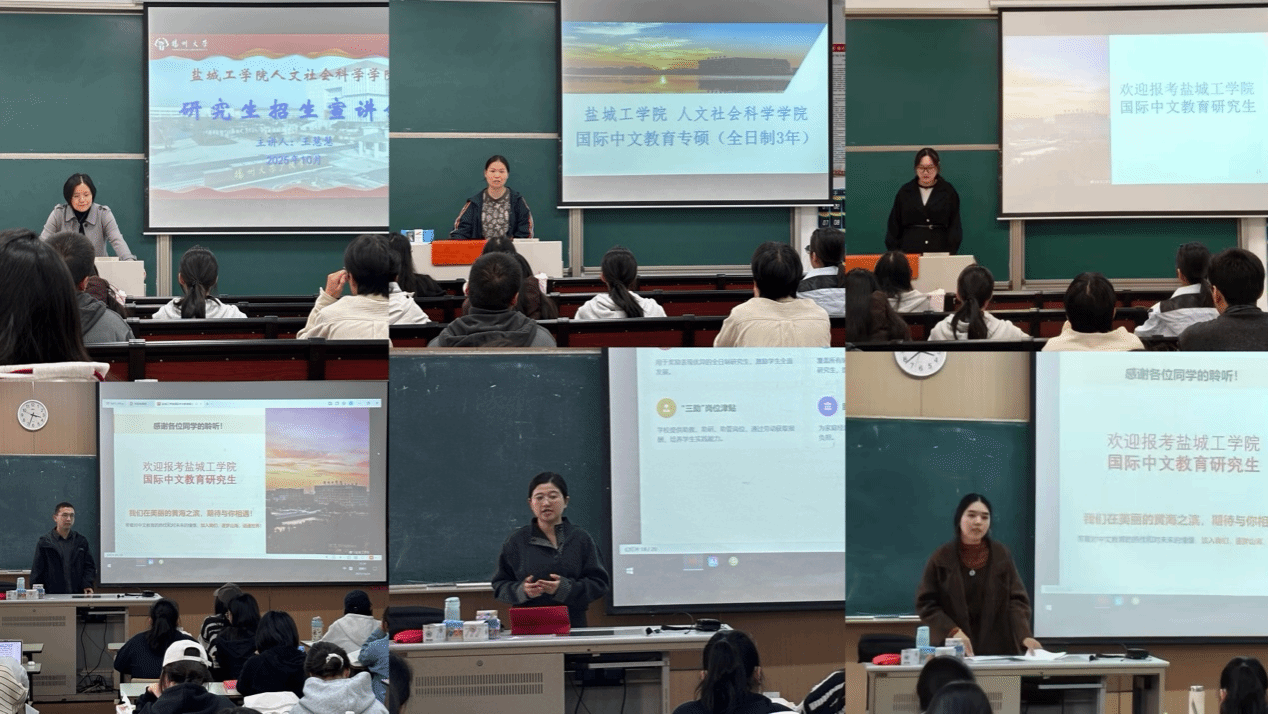 为提升学位点影响力,拓展优质生源渠道,10月中旬以来,公司组织由专业教师与在读研究生组成的宣传团队,先后前往扬州大学广陵公司、苏州科技大学天平等高校开展专场招生宣讲。团队精心准备宣讲材料,系统介绍学位点特色、培养模式、奖助政策与发展前景,并与考生现场交流互动,反响热烈。 此次宣讲有效增强了公司国际中文教育专业的认知度与吸引力。欢迎广大学子报考l9193永利国际中文教育硕士研究生!感谢社会各界对公司团队建设工作的关注与支持!