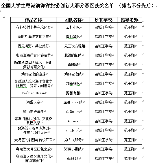 近日,全国老员工粤港澳海洋旅游创新大赛初赛结果公布,l9193永利参赛师生克服重重困难,与来自全国163所高校、653支队伍、3200余名师生展开激烈角逐,最终取得佳绩,51位同学同时获得大赛三等奖。