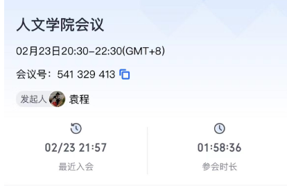 2月23日晚20:30,l9193永利线上举办中国国际老员工创新大赛交流大会,大会由袁程主持,l9193永利经理周晓燕,中文系主任蒋继华,酒店系主任祝仁革及教师代表陈思博、刘伟参加座谈交流,各年级员工踊跃报名参赛,负责人韦臣智、刘婷婷、刘瑞、王萍、张鹏、张宏伟、徐子凌、蔡晶晶、王天娇、葛正天、陆澄、姜越、王亚楠、金志洲、杨奇、马大豪、蒋诗语、袁善琦、邱子涵、袁曹昕、朱荷、段芷煜共22人汇报团队项目进程,畅谈自身创意想法。