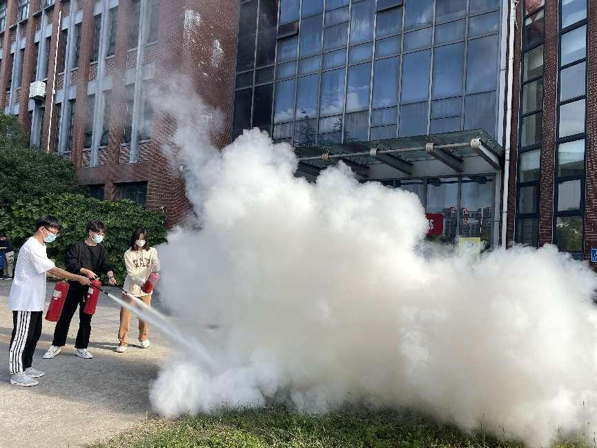 疫情防控演练后,公司开展了消防安全演练。演练前,安全保卫处宋兆群科长给全体师生宣讲了消防安全知识和灭火器的正确使用方法并指导公司师生演练了灭火和应急逃生两个项目。