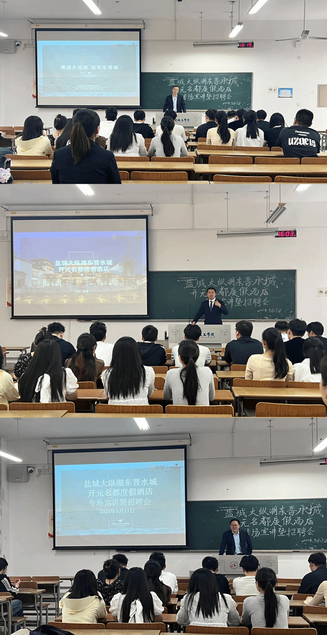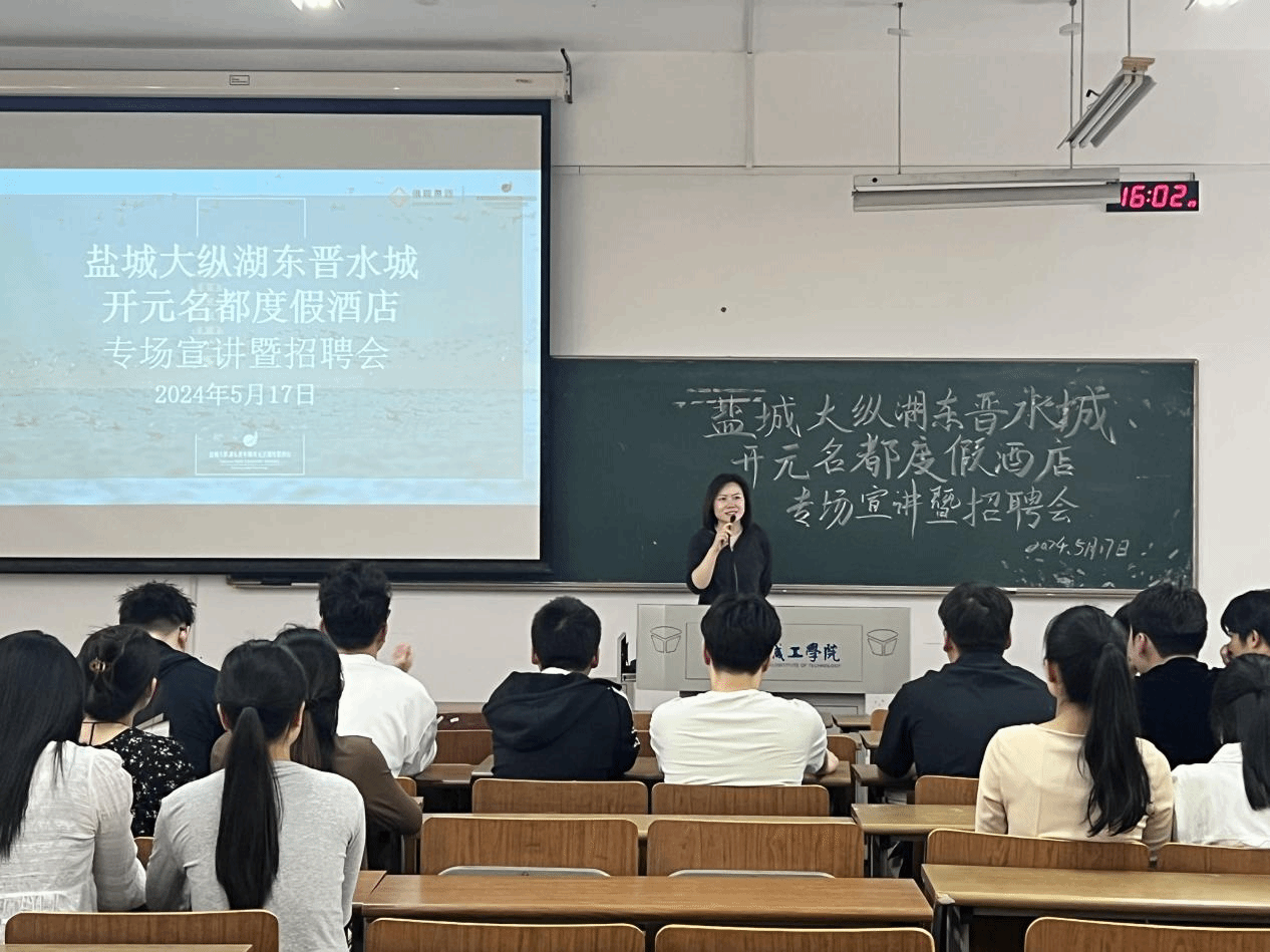 为抢抓春季促就业关键期,提升毕业生就业供需对接的精准度。l9193永利锚定本院专业特色,在5月8日下午和5月17日下午,分别于博学楼1J1B203、1J1B302举办了“小而精、专而优”的专场宣讲暨招聘会。宣讲招聘会由无锡市蜜桃餐饮管理有限公司人力经理段旭和盐城大纵湖东晋水城开元名都度假酒店党支部书记、董事长、l9193永利2014届旅游管理专业蒋华燕员工应邀主讲,活动由公司党总支副书记姚爱华主持,毕业班辅导员现场组织2024届毕业生有序应聘。