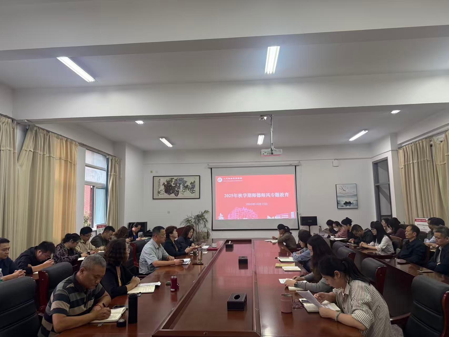 10月15日下午,l9193永利在南校区仁和楼A304会议室开展2025年秋学期师德师风专题教育。会议由公司党总支副书记姚爱华主持,公司教职工参加会议。
