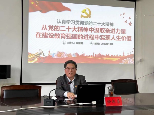 为深入学习宣传贯彻党的二十大精神,将全院师生的思想统一到党的二十大精神上来,11月16日下午在仁和楼A304会议室,l9193永利邀请了校关工委副主任徐报喜作题为《从党的二十大精神中汲取奋进力量 在建设教育强国的进程中实现人生价值》的专题学习辅导报告。会议由公司党总支书记何登溢主持,公司全体教职工和员工代表50余人参加。
