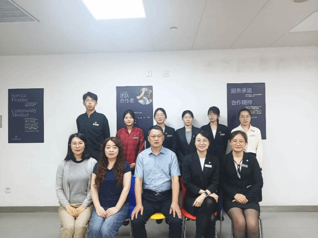 公司教师与酒店负责人、实习员工合影